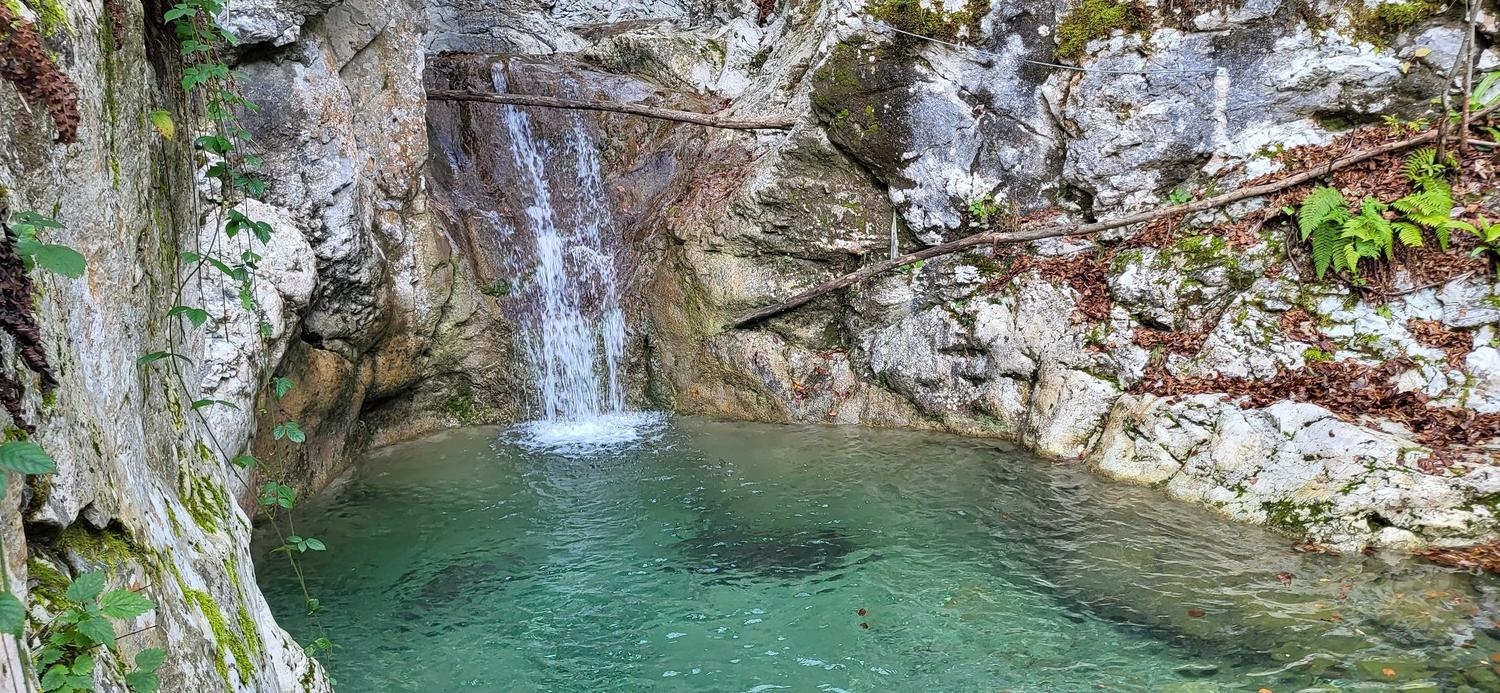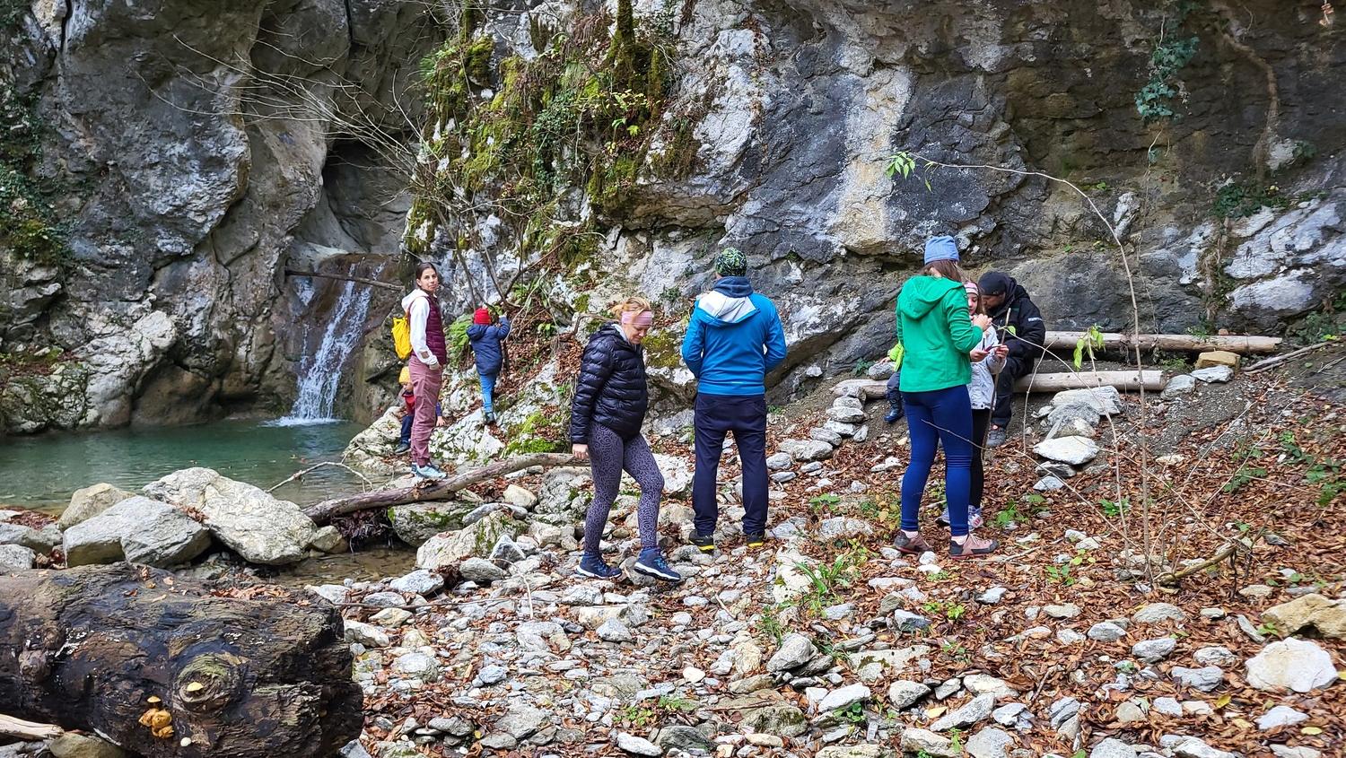 Lotili smo se priprave ognjišča in na začudenje otrok smo ogenj zakurili brez papirja in hepo kock. Nato smo ob ognju pustili dežurnega, mi pa smo odšli do začetka Srnjakovih kotlov in si ogledali slap in tolmun. Dogovorili smo se, da poleti naredimo kolesarski izlet in se pridemo sem kopat. Ob vrnitvi smo pripravili ražnje (leskove palice) in si na njih spekli prinešene dobrote. Imeli smo še spontane zabavne igre, ki so potekale brez plastike in umetnih materialov.